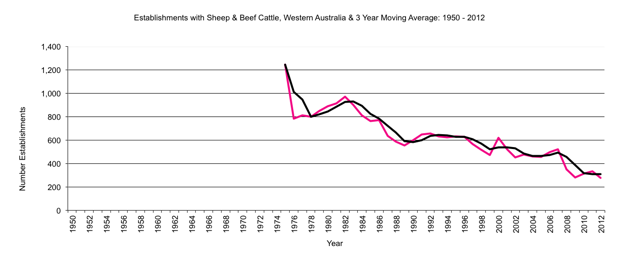 Western Australia Establishments with Sheep & Beef Cattle to 2012