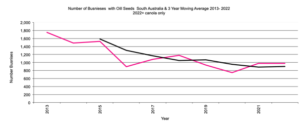 South Australia Businesses with Oilseeds graph |