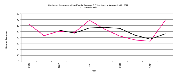 Tasmania Businesses with Oilseeds graph |