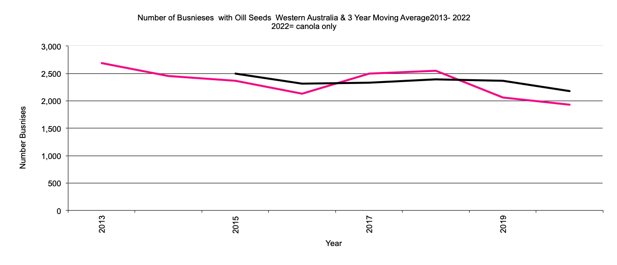 Western Australia Businesses with Oilseeds graph |