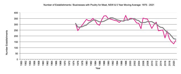 NSW Number of Establishments/Businesses Poultry for Meat,