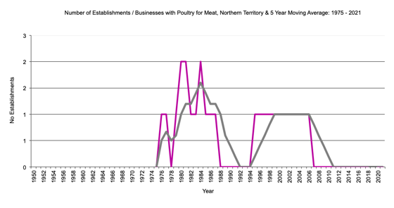 Northern Territory Number of Establishments/Businesses Poultry for Meat graph |