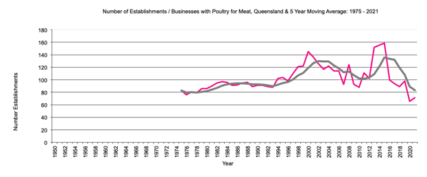 Queensland Number of Establishments/Businesses Poultry for Meat graph |