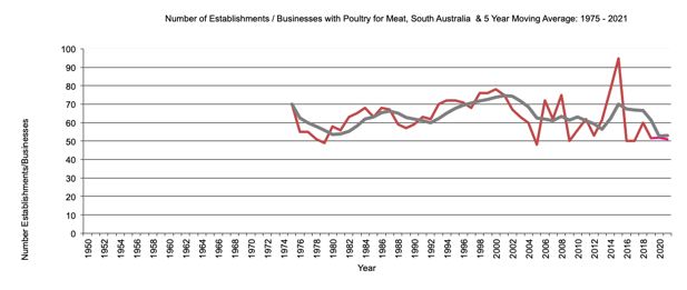 South Australia Number of Establishments/Businesses Poultry for Meat graph |