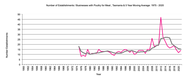 Tasmania Number of Establishments/Businesses Poultry for Meat,
