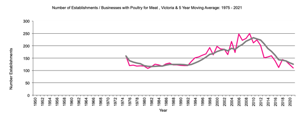 Victoria Number of Establishments/Businesses Poultry for Meat,