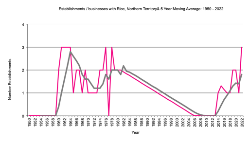 Northern Territory Establishments / Businesses Growing Rice graph |
