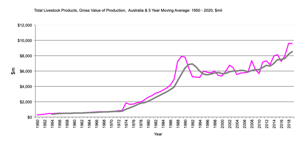 Total Livestock Products Gross Value of Production $m 5 year moving average